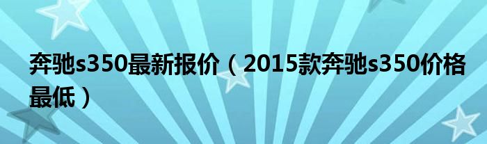 1,2015款奔驰s350价格最低 :2015款的没有S350的了,只有S320,400,500,和600,车型了,没有350这款了,320的价格在其实八万到九十多万。请采纳