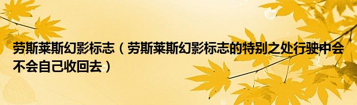 1,劳斯莱斯幻影标志的特别之处行驶中会不会自己收回去 :劳斯莱斯全系都是这样的。当车速高于60km/h 时会自动收回去,可以手动在升起。当停车时会自动收回,当受到外力时,比如用手掰他,会自动收回。或是车钥匙离开一定的距离会收回。