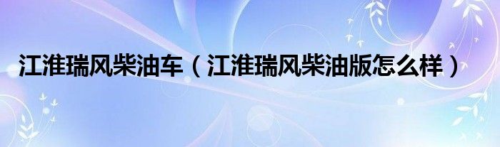 大家好,小常来为大家解答以下问题,对于江淮瑞风柴油车,江淮瑞风柴油版怎么样很多人还不知道,今天让我们一起来看看吧!