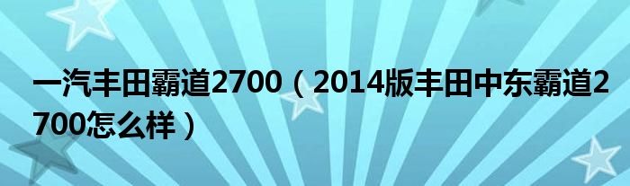 一汽丰田霸道2700(2014版丰田中东霸道2700怎么样)