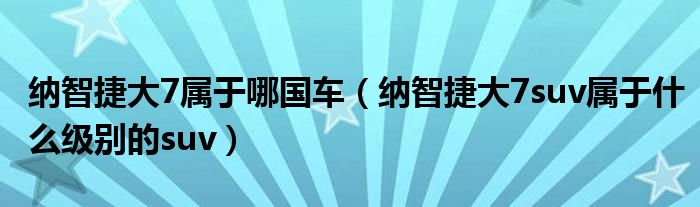 大家好,阳阳来为大家讲解下。纳智捷大7属于哪国车,纳智捷大7suv属于什么级别的suv很多人还不知道,现在让我们一起来看看吧!