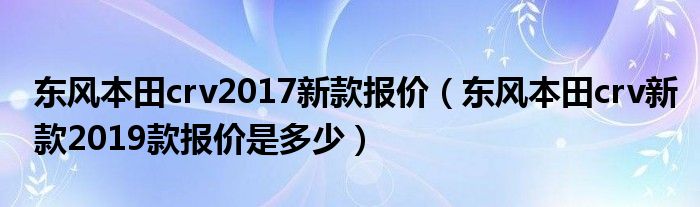 大家好,阳阳来为大家讲解下。东风本田crv2017新款报价,东风本田crv新款2019款报价是多少很多人还不知道,现在让我们一起来看看吧!