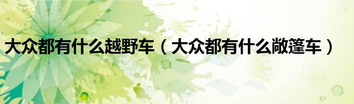 大家好,阳阳来为大家讲解下。大众都有什么越野车,大众都有什么敞篷车很多人还不知道,现在让我们一起来看看吧!