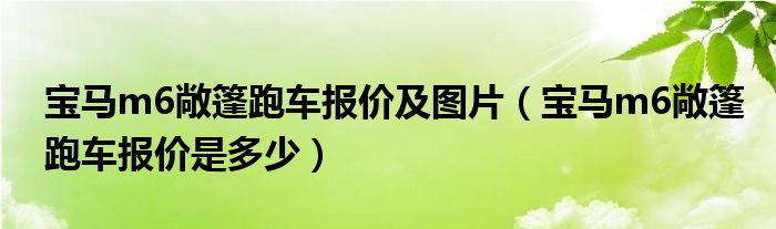 大家好,阳阳来为大家讲解下。宝马m6敞篷跑车报价及图片,宝马m6敞篷跑车报价是多少很多人还不知道,现在让我们一起来看看吧!