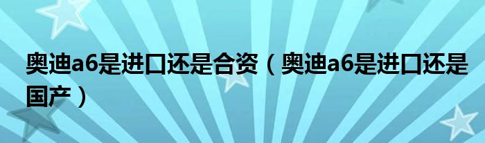 大家好,阳阳来为大家讲解下。奥迪a6是进口还是合资,奥迪a6是进口还是国产很多人还不知道,现在让我们一起来看看吧!
