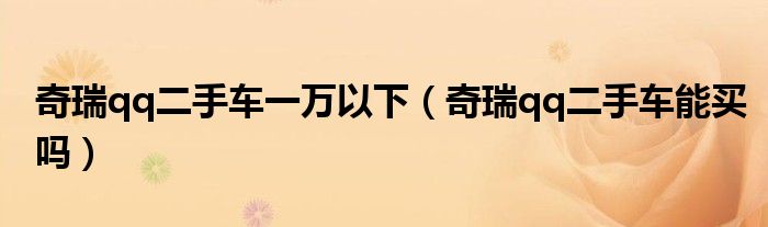 大家好,阳阳来为大家讲解下。奇瑞qq二手车一万以下,奇瑞qq二手车能买吗很多人还不知道,现在让我们一起来看看吧!