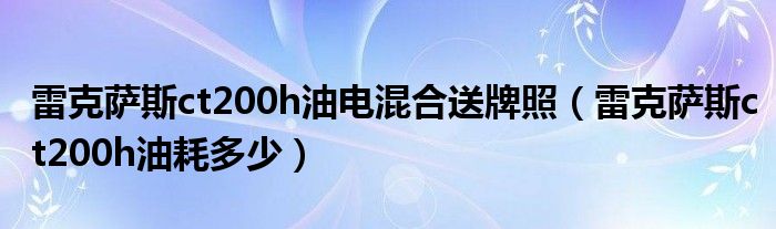 大家好,阳阳来为大家讲解下。雷克萨斯ct200h油电混合送牌照,雷克萨斯ct200h油耗多少很多人还不知道,现在让我们一起来看看吧!