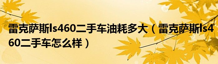大家好,阳阳来为大家讲解下。雷克萨斯ls460二手车油耗多大,雷克萨斯ls460二手车怎么样很多人还不知道,现在让我们一起来看看吧!