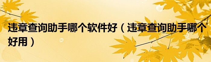 大家好,阳阳来为大家讲解下。违章查询助手哪个软件好,违章查询助手哪个好用很多人还不知道,现在让我们一起来看看吧!