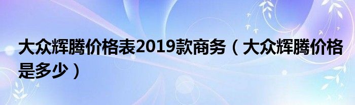 大家好,阳阳来为大家讲解下。大众辉腾价格表2019款商务,大众辉腾价格是多少很多人还不知道,现在让我们一起来看看吧!