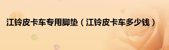 大家好,阳阳来为大家讲解下。江铃皮卡车专用脚垫,江铃皮卡车多少钱很多人还不知道,现在让我们一起来看看吧!
