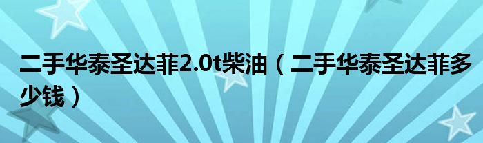大家好,阳阳来为大家讲解下。二手华泰圣达菲2.0t柴油,二手华泰圣达菲多少钱很多人还不知道,现在让我们一起来看看吧!