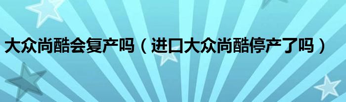 大家好,阳阳来为大家讲解下。大众尚酷会复产吗,进口大众尚酷停产了吗很多人还不知道,现在让我们一起来看看吧!