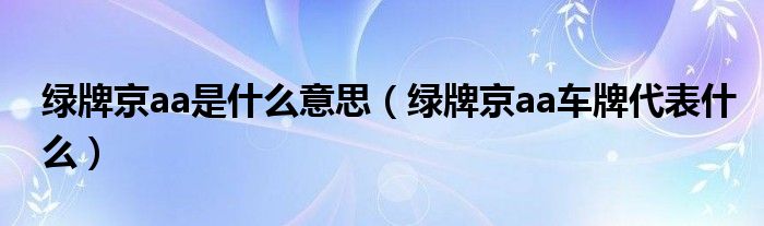 大家好,小美来为大家解答以上问题。绿牌京aa是什么意思,绿牌京aa车牌代表什么很多人还不知道,现在让我们一起来看看吧!