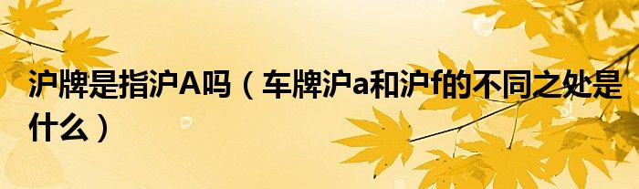 大家好,小美来为大家解答以上问题。沪牌是指沪A吗,车牌沪a和沪f的不同之处是什么很多人还不知道,现在让我们一起来看看吧!
