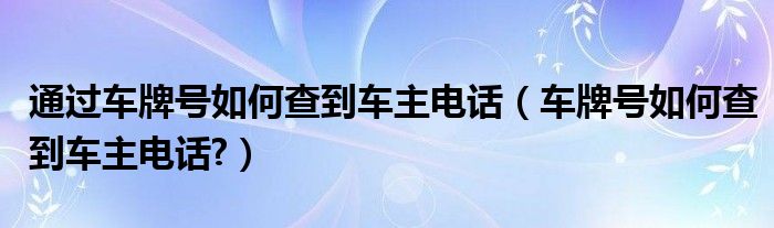 1、如何用车牌查询车主电话:可以在网页上搜索网上车管所,点击进入“网上车管所”,点击进入“机动车信息查询”,输入要查询的机动车的车牌类型和号码,点击“查询”