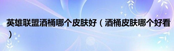关于英雄联盟酒桶哪个皮肤好,酒桶皮肤哪个好看这个很多人还不知道,今天菲菲来为大家解答以上的问题,现在让我们一起来看看吧!