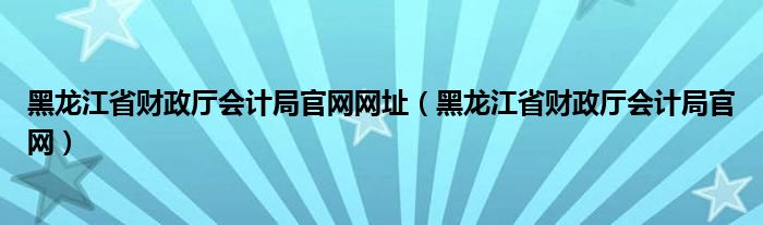 黑龙江省财政厅会计局官网网址(黑龙江省财政厅会计局官网)