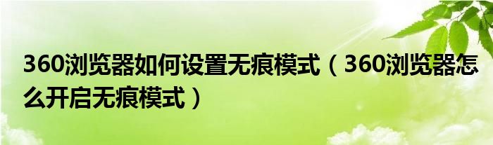 关于360浏览器如何设置无痕模式,360浏览器怎么开启无痕模式这个很多人还不知道,今天菲菲来为大家解答以上的问题,现在让我们一起来看看吧!