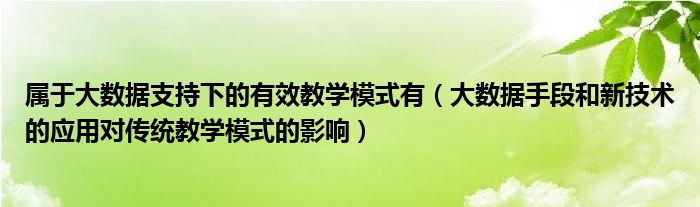 关于属于大数据支持下的有效教学模式有,大数据手段和新技术的应用对传统教学模式的影响这个很多人还不知道,今天菲菲来为大家解答以上的问题,现在让我们一起来看看吧!
