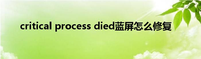 关于critical process died蓝屏怎么修复这个很多人还不知道,今天菲菲来为大家解答以上的问题,现在让我们一起来看看吧!