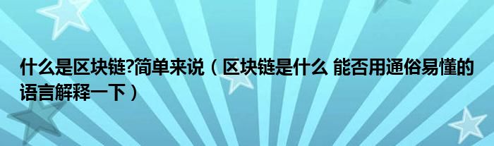 关于什么是区块链?简单来说,区块链是什么 能否用通俗易懂的语言解释一下这个很多人还不知道,今天菲菲来为大家解答以上的问题,现在让我们一起来看看吧!