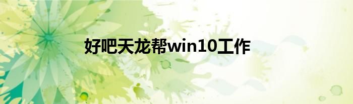关于好吧天龙帮win10工作这个很多人还不知道,今天菲菲来为大家解答以上的问题,现在让我们一起来看看吧!