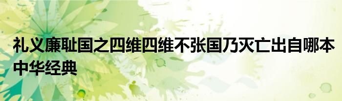 关于礼义廉耻国之四维四维不张国乃灭亡出自哪本中华经典这个很多人还不知道,今天菲菲来为大家解答以上的问题,现在让我们一起来看看吧!