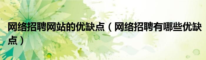 关于网络招聘网站的优缺点,网络招聘有哪些优缺点这个很多人还不知道,今天菲菲来为大家解答以上的问题,现在让我们一起来看看吧!