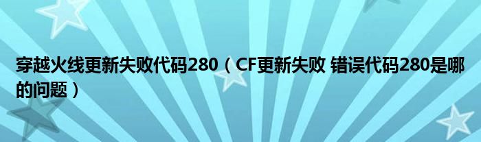 关于穿越火线更新失败代码280,CF更新失败 错误代码280是哪的问题这个很多人还不知道,今天菲菲来为大家解答以上的问题,现在让我们一起来看看吧!