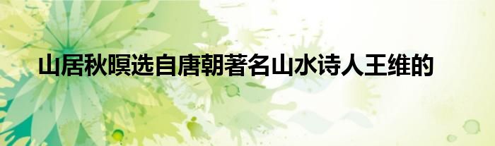 关于山居秋暝选自唐朝著名山水诗人王维的这个很多人还不知道,今天菲菲来为大家解答以上的问题,现在让我们一起来看看吧!