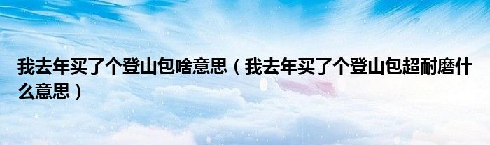关于我去年买了个登山包啥意思,我去年买了个登山包超耐磨什么意思这个很多人还不知道,今天菲菲来为大家解答以上的问题,现在让我们一起来看看吧!