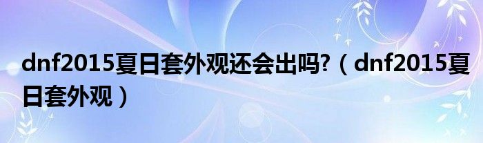 关于dnf2015夏日套外观还会出吗?,dnf2015夏日套外观这个很多人还不知道,今天菲菲来为大家解答以上的问题,现在让我们一起来看看吧!