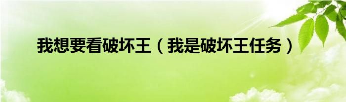 大家好,小晋来为大家解答以下问题,关于我想要看破坏王,我是破坏王任务很多人还不知道,今天让我们一起来看看吧!
