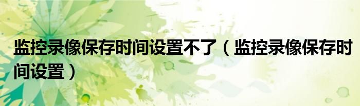 大家好,小晋来为大家解答以下问题,关于监控录像保存时间设置不了,监控录像保存时间设置很多人还不知道,今天让我们一起来看看吧!