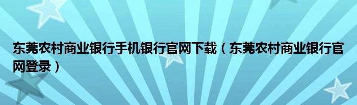 关于东莞农村商业银行手机银行官网下载,东莞农村商业银行官网登录这个很多人还不知道,今天菲菲来为大家解答以上的问题,现在让我们一起来看看吧!