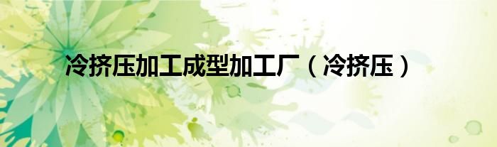 关于冷挤压加工成型加工厂,冷挤压这个很多人还不知道,今天菲菲来为大家解答以上的问题,现在让我们一起来看看吧!