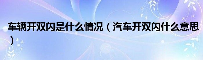 关于车辆开双闪是什么情况,汽车开双闪什么意思这个很多人还不知道,今天菲菲来为大家解答以上的问题,现在让我们一起来看看吧!