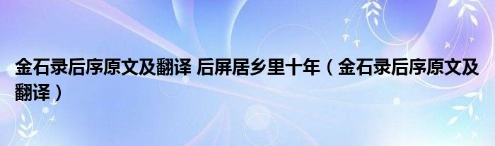 关于金石录后序原文及翻译 后屏居乡里十年,金石录后序原文及翻译这个很多人还不知道,今天菲菲来为大家解答以上的问题,现在让我们一起来看看吧!