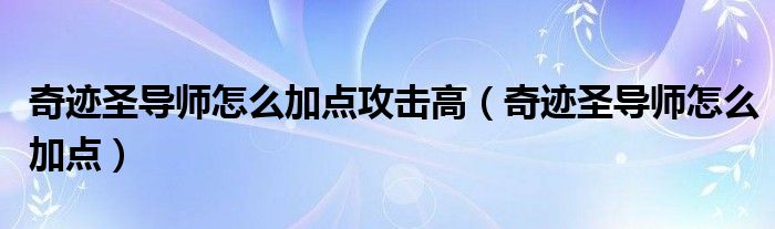 关于奇迹圣导师怎么加点攻击高,奇迹圣导师怎么加点这个很多人还不知道,今天菲菲来为大家解答以上的问题,现在让我们一起来看看吧!