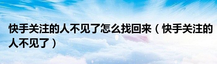 大家好,小晋来为大家解答以下问题,关于快手关注的人不见了怎么找回来,快手关注的人不见了很多人还不知道,今天让我们一起来看看吧!