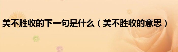 关于美不胜收的下一句是什么,美不胜收的意思这个很多人还不知道,今天菲菲来为大家解答以上的问题,现在让我们一起来看看吧!