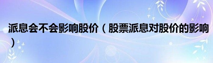 派息会不会影响股价(股票派息对股价的影响)