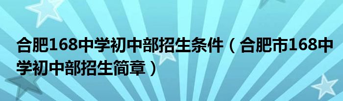 关于合肥168中学初中部招生条件,合肥市168中学初中部招生简章这个很多人还不知道,今天菲菲来为大家解答以上的问题,现在让我们一起来看看吧!