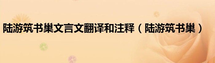 关于陆游筑书巢文言文翻译和注释,陆游筑书巢这个很多人还不知道,今天菲菲来为大家解答以上的问题,现在让我们一起来看看吧!