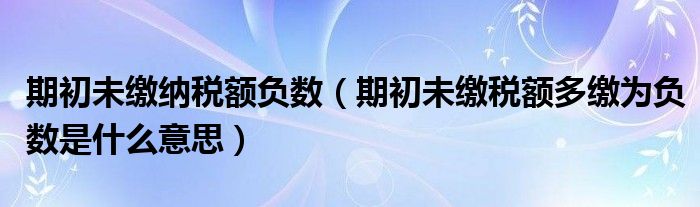 关于期初未缴纳税额负数,期初未缴税额多缴为负数是什么意思这个很多人还不知道,今天菲菲来为大家解答以上的问题,现在让我们一起来看看吧!