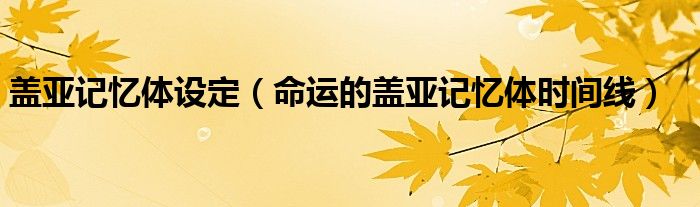 关于盖亚记忆体设定,命运的盖亚记忆体时间线这个很多人还不知道,今天菲菲来为大家解答以上的问题,现在让我们一起来看看吧!