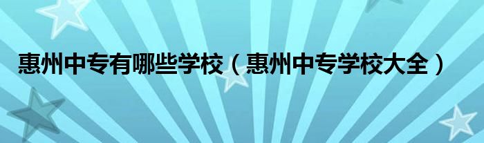 关于惠州中专有哪些学校,惠州中专学校大全这个很多人还不知道,今天菲菲来为大家解答以上的问题,现在让我们一起来看看吧!