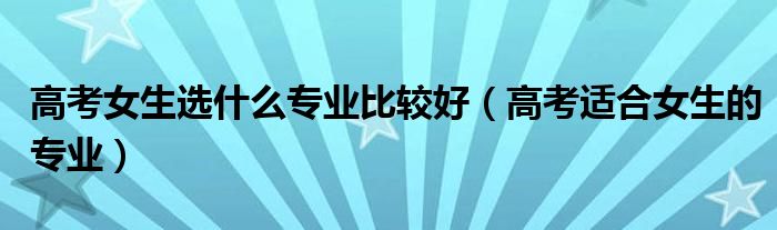 关于高考女生选什么专业比较好,高考适合女生的专业这个很多人还不知道,今天菲菲来为大家解答以上的问题,现在让我们一起来看看吧!