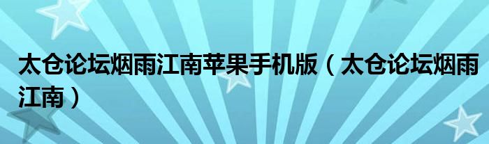 太仓论坛烟雨江南苹果手机版(太仓论坛烟雨江南)